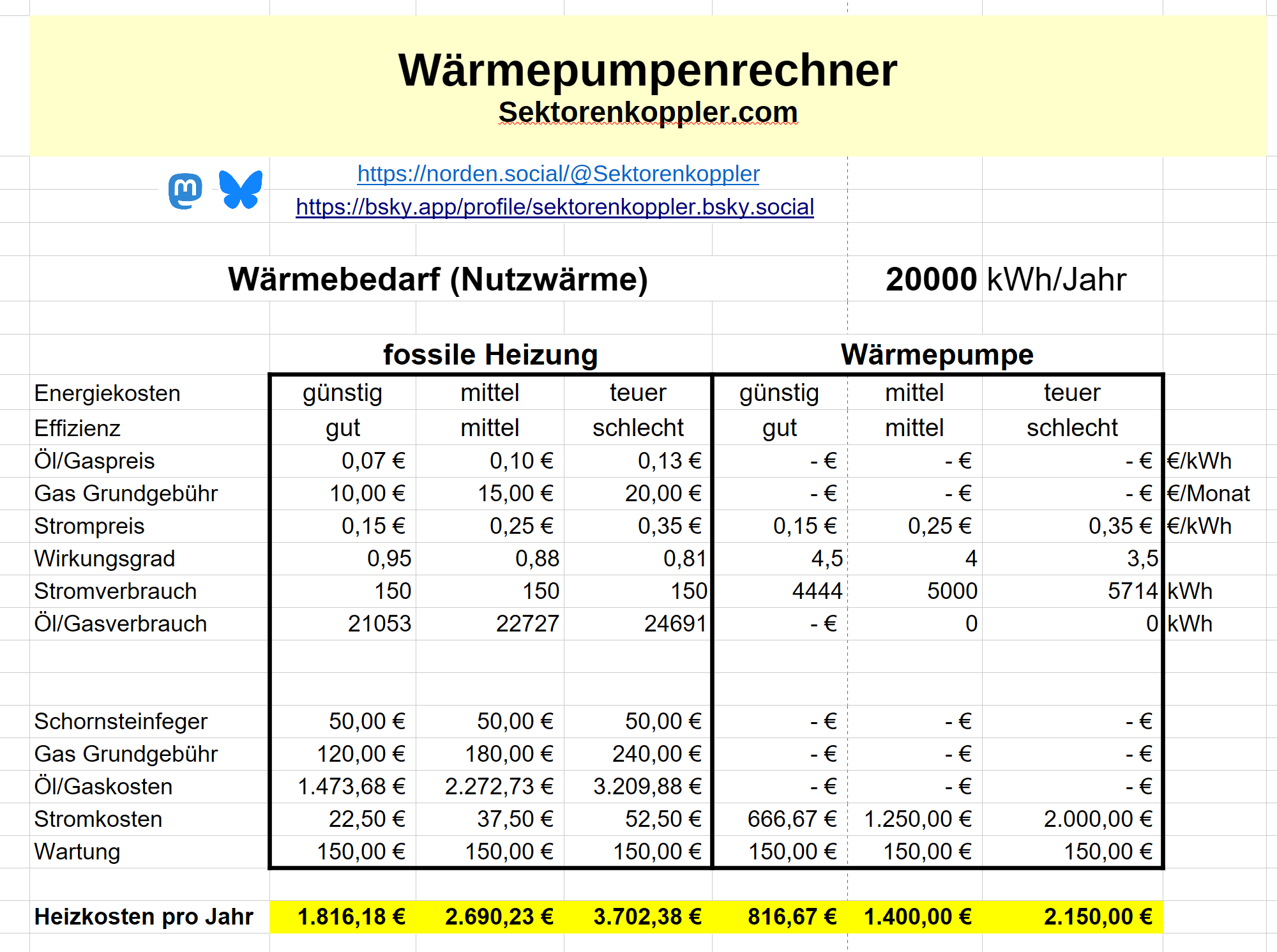 Wärmepumpe vs Fossile Heizung: Kleines Tool, um die Amortisation einer Wärmepumpe im Vergleich zur fossilen Heizung zu berechnen. | DOWNLOAD |